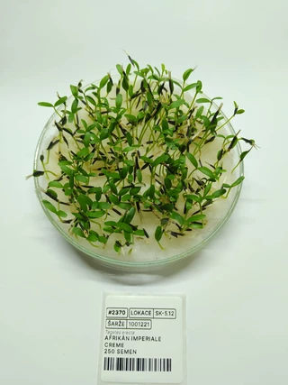 Nyní k samotnému výsevu. Afrikán můžete nasít do menšího sadbovače a sazeničky následně sázet do záhonu. Případně i výsít do výsevní misky, přepikýrovat do sadbovače a opět vzrostlé sazeničky sázet do záhonu. V obou případech sejeme semena afrikánu na povrch substrátu a lehce zasypeme vermikulitem. Afrikán není mrazuvzdorný, proto s jeho přesazením počkejte až po posledních mrazech. Po přesazení afrikán pokvete za 6 - 9 týdnů.