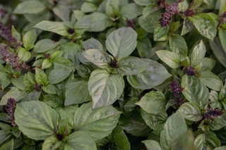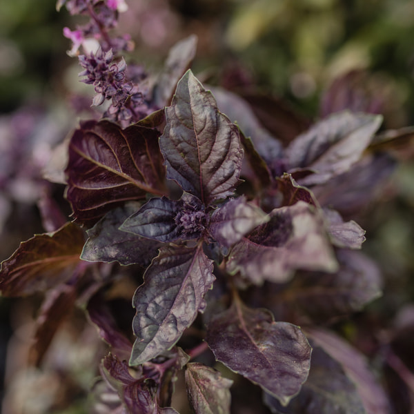 Klassieke basilicumsmaak en donkere, donkere bladeren. Dark Opal is een interessant exemplaar onder de basilicums, de bloemen zijn wijnpaars. We kweken basilicum voor boeketten, maar elk soort basilicum in ons aanbod kan ook gebruikt worden om mee te koken. In boeketten oogt het uniek en functioneert het direct als eetbare bloem. Als u van plan bent te oogsten voor de snij, laat de stelen dan niet verhouten en oogst 's ochtends.