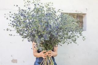 Een evergreen op de bloemenveiling! Kruisdistel is een vaste plant, gaat jaren mee in de border en breidt zich mooi uit. De "bloemen" en bladeren zijn licht stekelig, het lijkt tenslotte op een miniatuurdistel. De stelen en toppen zijn zilverachtig blauw. En een rijpe uitgebloeide kruisdistel verwelkt niet, dus ideaal om te drogen, voor kransen en dergelijke.