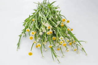 Voor het drogen oogsten we hem op het moment dat de eerste bloemen opengaan. Het gele hart van de bloem mag nog niet te veel uitsteken. Gewoon ondersteboven ophangen op een droge en geventileerde plaats, uit het zonlicht.